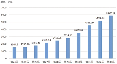 第33届中国电子元件百强企业2019年主营业务收入总额为5899亿元,同比增长14.65%。