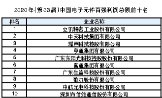 今年2月初,中国电子元件行业协会正式开展2020年(第33届)中国电子元件百强企业的排序工作。经过6个月的紧张工作,中国电子元件行业协会信息中心根据申报企业2019年的经营情况数据,在规模实力、财务状况、研发能力等方面表现突出的100家中国电子元件骨干企业脱颖而出,入围新一届中国电子元件百强。