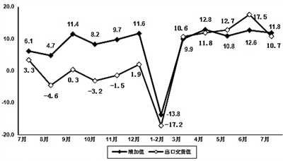 1—7月,规模以上电子信息制造业出口交货值同比增长5.1%,较去年同期加快0.9个百分点。7月份,规模以上电子信息制造业出口交货值同比增长10.7%,比去年同期加快7.4个百分点。