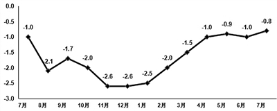 1—7月,电子信息制造业生产者出厂价格同比下降1.4%。7月份,电子信息制造业生产者出厂价格同比下降0.8%,降幅比上月收窄0.2个百分点。
