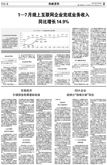 1—7月规上互联网企业完成业务收入同比增长14.9%