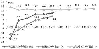 2020年7月份,浙江省软件和信息技术服务业发展延续上半年回升态势,软件业务持续稳步增长,实现业务收入3820.1亿元,同比增速达12%;实现利润总额912.4亿元,利润增速由负转正;软件出口83390万美元,同比增长6.6%。