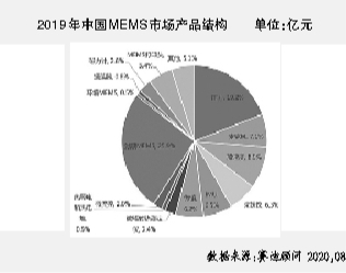在MEMS市场产品结构中,压力传感器在移动互联网、汽车电子和医疗电子领域的产量继续领跑,细分产品市场份额居前列。2019年,射频MEMS由于在中国发展逐渐成熟,应用于工业和消费品等多个领域,在产品结构中位列首位,占比25.9%。