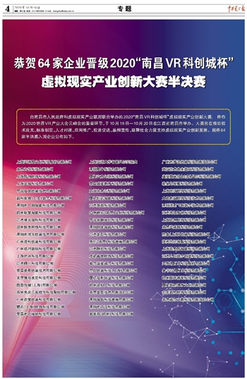 恭贺64家企业晋级2020“南昌VR科创城杯”虚拟现实产业创新大赛半决赛