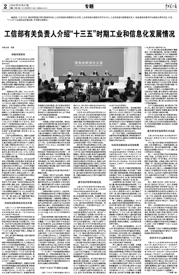 工信部有关负责人介绍“十三五”时期工业和信息化发展情况