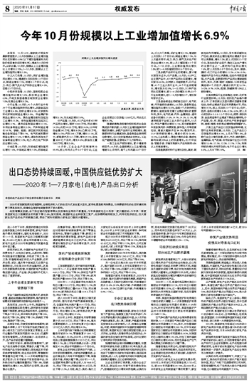 今年10月份规模以上工业增加值增长6.9%