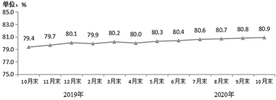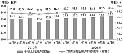 移动电话用户规模保持稳定,4G用户占比持续提升。截至10月末,三家基础电信企业的移动电话用户总数达16亿户,同比增长0.1%。其中4G用户数为12.96亿户,同比增长2.1%,比上年末净增1392万户;4G用户在移动电话用户总数中占比为80.9%,占比较9月末提高0.1个百分点。