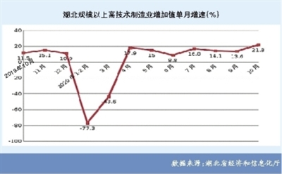 10月份,随着湖北省统筹推进疫情防控和经济社会发展成效不断巩固,多数行业和产品持续增长,全省规模以上工业增加值增长9.3%,增速创今年新高,自5月份(2%)由负转正以来连续6个月正增长,1—10月增加值增速累计下降9.3%,降幅收窄至个位数,工业经济持续复苏向好。