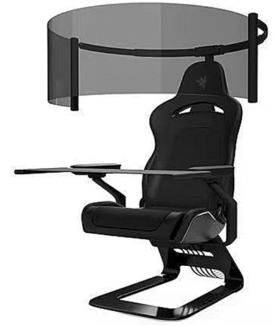 雷蛇也推出了配备60英寸柔性全环绕式显示器的电竞椅。这款电竞椅的显示器可以折叠收纳至椅背后方,展开后则可变成60英寸的全环绕式显示器,完全展开后更拥有接近180°的可视角度,基本覆盖了人眼所能及的全部范围,能够营造更出色的沉浸式游戏体验。