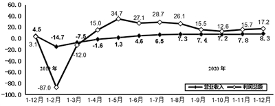 2020年,规模以上电子信息制造业实现营业收入同比增长8.3%,增速同比提高3.8个百分点;利润总额同比增长17.2%,增速同比提高14.1个百分点。营业收入利润率为4.89%,营业成本同比增长8.1%。12月末,全行业应收票据及应收账款同比增长11.8%。