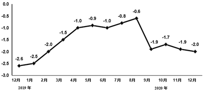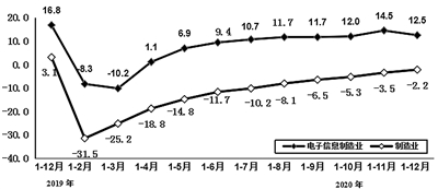 2020年,电子信息制造业生产者出厂价格同比下降1.5%。12月,电子信息制造业生产者出厂价格同比下降2.0%,降幅比上月扩大0.1个百分点。