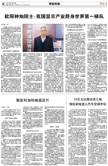 欧阳钟灿院士:我国显示产业跻身世界第一梯队