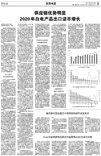 供应链优势明显 2020年白电产品出口逆市增长