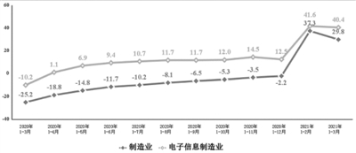 第一季度,电子信息制造业固定资产投资同比增长40.4%(去年同期为下降10.2%)。