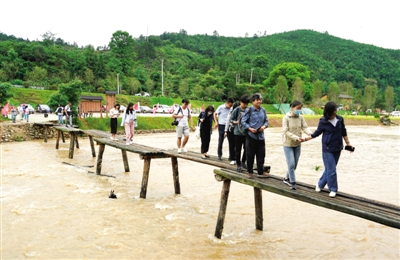 当年,中央红军渡于都河时,河面宽有600多米,水深1~3米,水深流急、深浅不一。因为没有大批的船只,更没有现成的桥梁,红军渡河遇到了极大困难,大部队要过河就只有依靠架设浮桥。