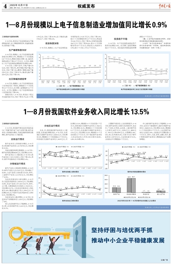 1—8月份规模以上电子信息制造业增加值同比增长0.9%